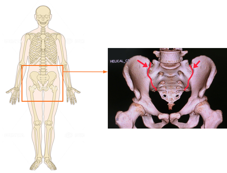 ”原因不明”例の多くに、骨盤の「仙骨」と「腸骨」の間にある仙腸関節(せんちょうかんせつ)と、その周辺の靭帯が関与していることが多くあります。一般的に若い方は「腰椎椎間板(ようついついかんばん)ヘルニア」、高齢者は「腰部脊柱管狭窄症(ようぶせきちゅうかんきょうさくしょう)」として治療されている例が多いですが、もし通常の治療で十分な治療効果が感じられない場合は、「仙腸関節障害」を疑ってみる必要があるかもしれません。子供から成人、高齢者まで誰にでも発症する可能性があり、女性の方が男性より少し頻度が高いようです。